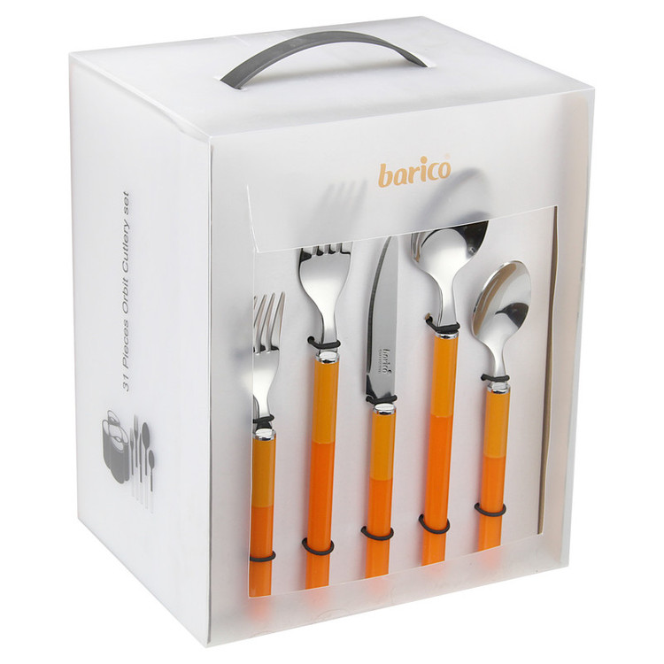 سرویس قاشق و چنگال 31 پارچه باریکو مدل Orbit تقریبا تمام آنچه را که برای سرو انواع غذا به آن نیاز دارید را در اختیارتان می گذارد. این سرویس شامل : شش عدد قاشق مرباخوری , شش عدد چنگال غذا خوری , شش عدد قاشق غذاخوری , شش عدد کارد میوه , شش عدد چنگال میوه و یک استند همرنگ می باشد.