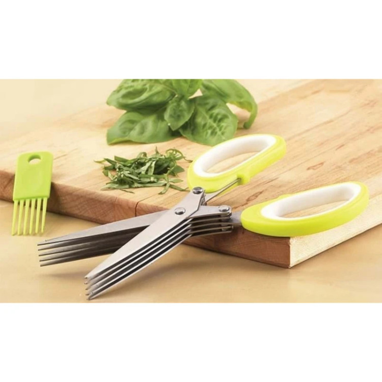 قیچی سبزیجات، قیچی 5 لایه، خرد کردن انواع سبزیجات در همان ابعاد، و علاوه بر شتاب روند خرد کردن با ایجاد یک اندازه متناسب با همه برش، میز کود خانه زیباتر است. قیچی یونگ ژائو یک ابزار با کیفیت مناسب و فوق العاده برای خرد کردن است، دارای 10 تیغه بسیار تیز برای کاربردهای مختلف، خرد کردن انواع سبزیجات مانند کاهو، کلم و پیچ بدون خرد کردن آنها است. تیغه قیچی از فولاد ضد زنگ ساخته شده است، مواد دسته پلاستیکی است.